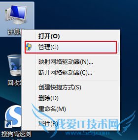 1. 鼠标右键点击我的电脑,选择管理并打开管理;