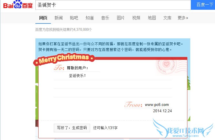 欢迎您访问我爱IT技术网,今天小编为你分享的电脑教程是日常使用电脑方面的电脑常识:百度圣诞卡怎么制作,学会并运用这些电脑常识,让你快速玩转电脑及互联网方面的知识,下面是详细的分享!