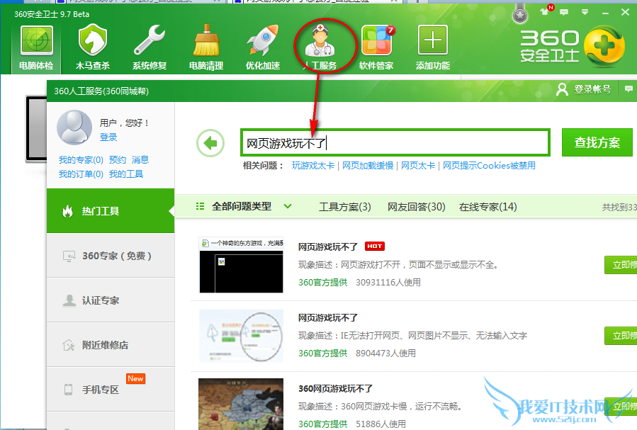 方法一:安装了360安全卫士的朋友可以用360安全卫士修复。人工服务==游戏玩不了==查找方案。