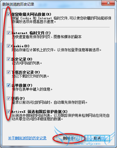 3、勾选所有选项==删除