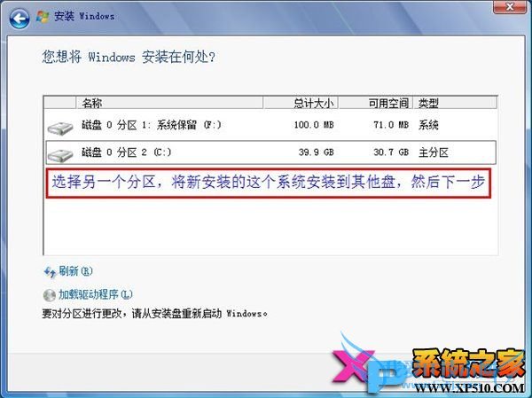 7、如下图提醒,在安装过程中选择安装在何处时,选择一个新的分区,确保不是覆盖安装。