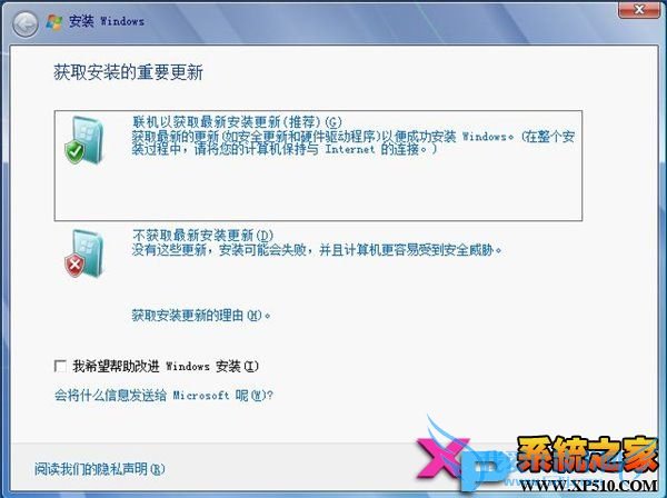 4、由于是安装双系统,直接选择第二项:不获取最新安装更新,点击后直接进入下一步安装界面。