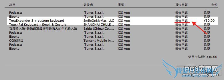 第七步:iTunes 将跳转到另一个页面,显示该收据同一批次下的所有应用程序,点击左侧的箭头图标,以进入该订单的详情页。