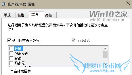 4、选择“增强”标签,勾选“禁用所有声音效果”后点击确定