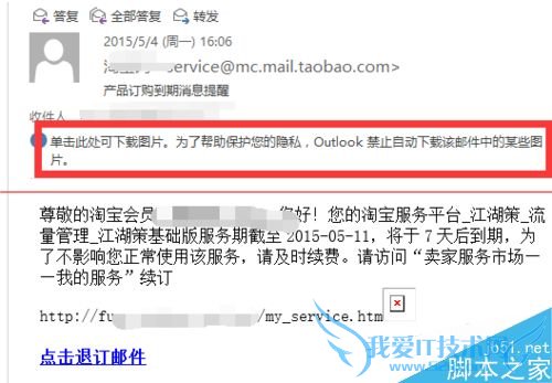1、情况如下,每次打开outlook的时候 这里的图片是无法自动显示的。你可以单击 下载