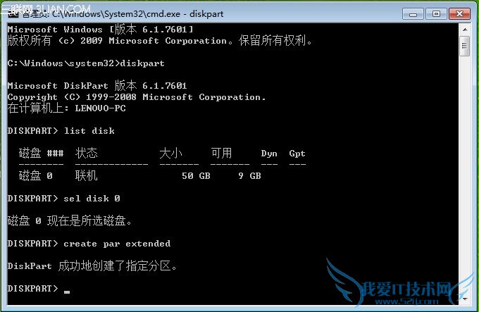 欢迎您访问我爱IT技术网,今天小编为你分享的电脑教程是日常使用电脑方面的电脑常识:使用diskpart工具划分扩展分区的详细步骤,学会并运用这些电脑常识,让你快速玩转电脑及互联网方面的知识,下面是详细的分享!
