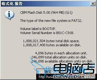 6、格式化U盘完毕后弹出下图报告,点击“确定”。