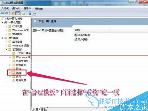 3、然后在“管理模版”下找到“系统”这一项,选定此项。