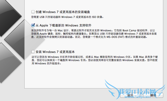 3.选择“从Apple下载最新的Windows支持软件”,其他两个不选,点“继续”