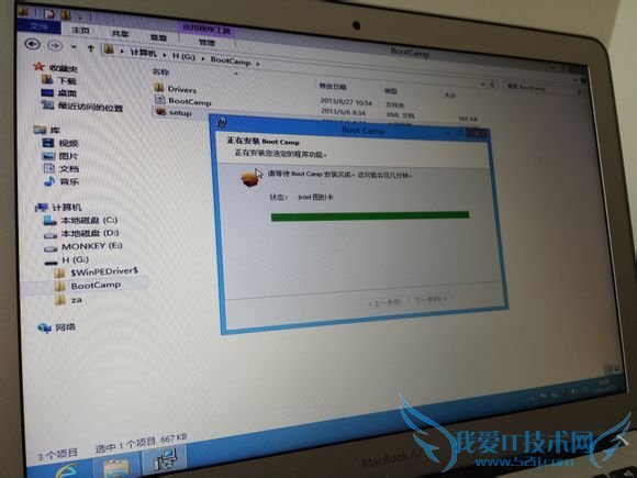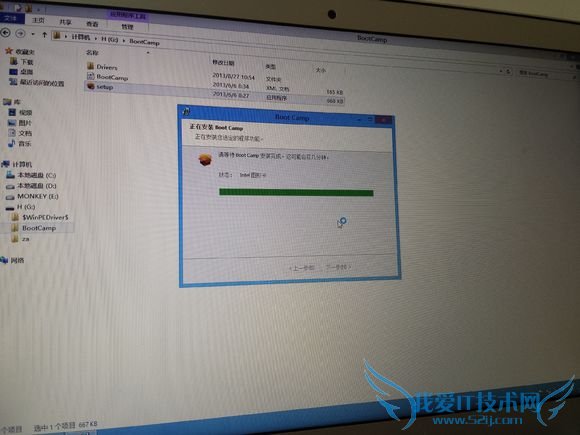 6.win8已经顺利启动了,但是现在的驱动还都没装。下面把刚才的小U盘插进Mac,找到Boot camp文件夹,运行里面的“setup.exe”,把驱动装上。