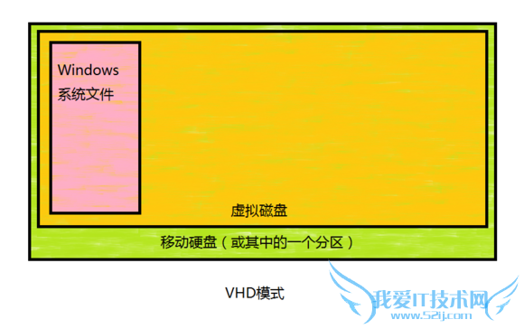 因此,推荐使用VHD模式。但需要注意的是,使用VHD模式后,你的移动硬盘(或其中的一个分区)的空间会被虚拟磁盘占满。而虚拟磁盘内部可能不满,虚拟磁盘才是Windows的系统盘(C盘)。