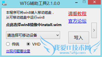 2.插上移动硬盘(必须的),打开WTGA 2.1的exe文件