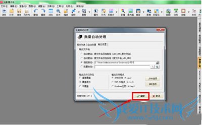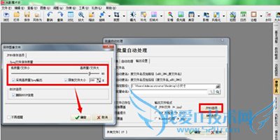 6.指定了路径位置了以后,在“输出文件格式”一栏点击旁边的JPEG选项,在弹出来的JPEG选项窗口里,可以调整高低质量的百分比比例,还可以设置限制我们输出的图片的体积大小在多少K以内,设置好这些参数以后,点击确定
