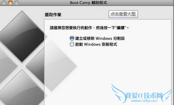 第四步:开启Boot Camp 助理,然后选择”建立或移除Windows分区”,接着把分区还原回来,就等同于把Windows移除了!