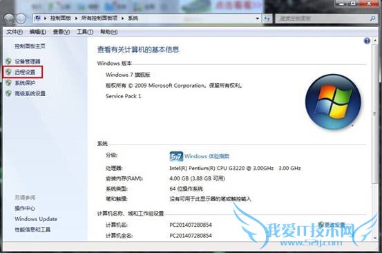 2.在打开的计算机属性页面,我们找到页面左边的“远程设置”点击打开。如下图所示
