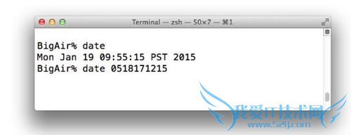 2、为了确定终端日期设置是否解决了该问题重新安装 OS X,用户需在“安装OS X”启动菜单>命令行,下拉“实用工具’菜单选项,选择’终端”,然后输入以下命令:date点击回车键,如果报告日期是当前日期,那么就能找到该问题的原因了,如图所示: Mon Jan 19 09:55:15 PST 1984 这一行内容非常重要,以为只有日期正确了才能成功安装 OS X,如果改日期遭遇 OS X 的发布时期,那么就会出现上述的错误,所以年份特为重要。如果时间错误,有两种方法进行设置,可以设置为自动调整日期,通过网络设置要简单方便一些: ntpdate -u time.apple.com 如果 Mac 没有网络访问就不能进行这项设置,因此,用户需要使用手动设置。 如果用户熟悉命令行则可使用 日期-帮助 进行检索,这种日期格式开起来可能会有点怪—“[mm]dd]HH]MM[[cc]yy]”,其实也就是“月日时分年”,这是一行固定格式,在数字之间不 能加入空格和其他符号,比如将日期设置为:“September 20 2016 at 17:33′′,用户可看到以下语法: date 0920173316 这看起来像是一组随机的数字,但其实就是月份09,时间1733,年份16,几个时间组成的。