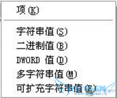 细心的朋友可能会注意到,键值项的图标内容有些是“ab”,有些又是“0、1”,这是因为注册表编辑器根据键值的不同将键值项分为了字符型和数值型两大类的缘故。在键值项窗口空白处单击右键,选择“新建”菜单项,可以看到这些键值被细分为:字符串值、二进制值、DWORD值、多字符串值、可扩充字符串值五种类型(如图2)。