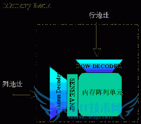 我们知道主板上使用的32MB/64MB/128MB的内存条都是由若干内存芯片焊接在4层或6层电路板上组成的,因此首先我们必须对内存芯片的内部结构有个清楚的认识,见下图: