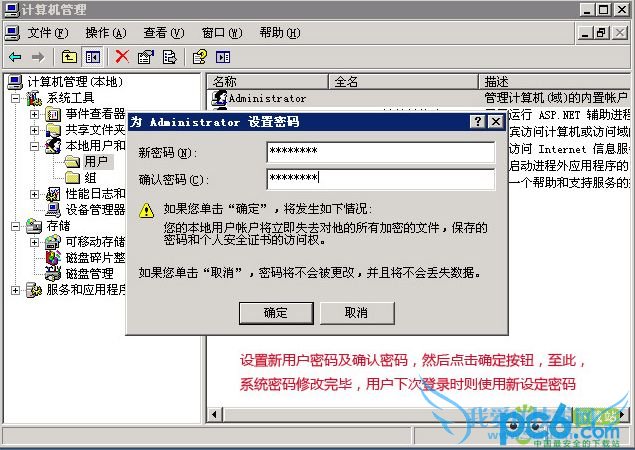 第六步:设置新用户密码,按确定,至此系统密码修改完毕。