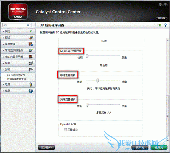 5. 调节“Mipmap详细程度”和“消除混叠模式”侧重于“性能”。