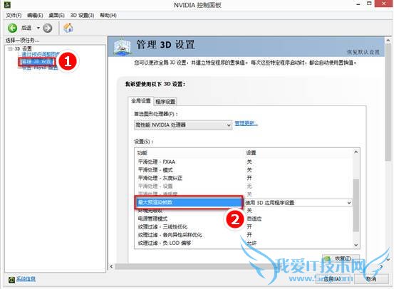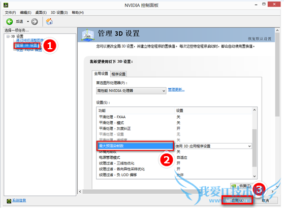 3. 如果游戏依然感觉会有卡顿可以选择“管理3d设置”---“最大预渲染帧数”;