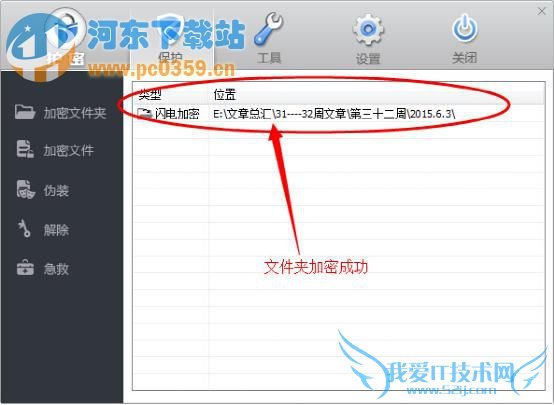 4、点击确定后在软件的界面里面也会出现加密的文件夹信息,这个时候我们要打开文件夹或者解密就只能输入正确密码了,所以大家加密时要谨记加密密码。