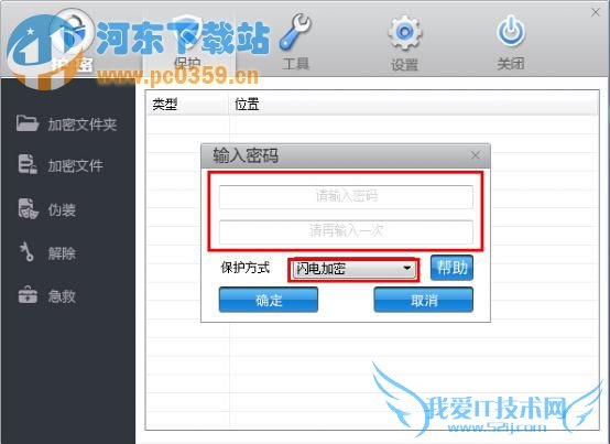 3、点击确定后会自动弹出一个加密的对话框,输入密码后选择“闪电加密”,也可以选择其他加密类型,然后点击“确定”。