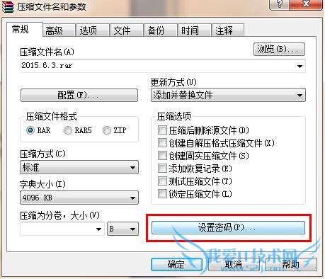 1、选择自己要加密的文件夹,点击右键,选择“添加到压缩文件”,会弹出一个压缩文件名和参数的窗口,在该窗口中点击“设置密码”。