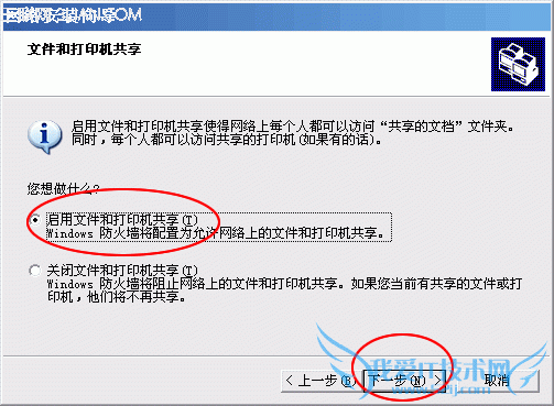 在用网络安装向导的过程中系统启用了Windows防火墙,并同时设置好了打印机共享,默认只允许同网段的计算机之间共享。
