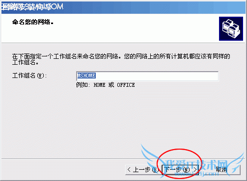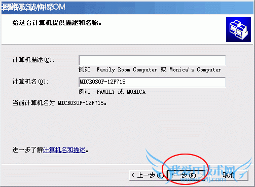 4、可设置计算机名和工作组名(要共享的计算机最好设同样的工作组名),也可直接点下一步。