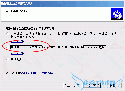 3、点下一步直到选择连接方法(通过网关连接到Internet)后再点下一步。