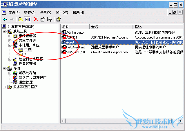 8、如仍不能共享,检查Guest用户是否被禁用:控制面板-->管理工具-->计算机管理,看Guest用户状态。