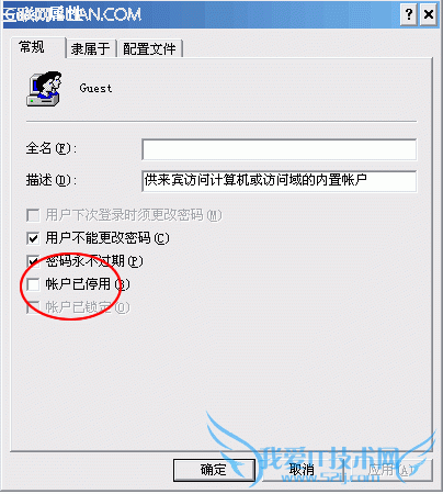 如已禁用,点其右键打开属性,去掉该帐号已停用。如果要设置为通过密码才能共享,点Guest用户设置密码即可。