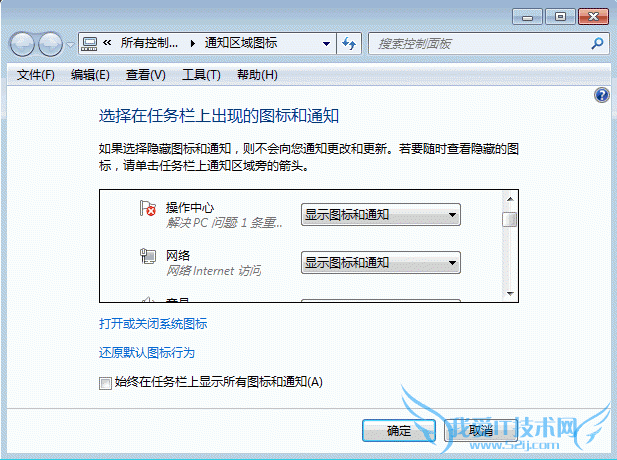 想还原回来就不用多说了吧,直接在“始终在任务栏上显示所有图标和通知(A)”前打上勾勾就行了!