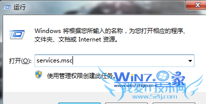 1、首先打开运行对话框,然后输入services.msc,回车进入服务界面;