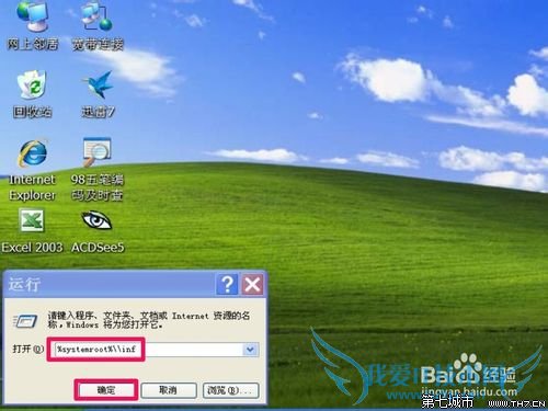 7,如果还未显示,那就是这个搜索功能未安装,安装方法,开始->运行->输入%systemroot%//inf命令,进入inf文件夹。