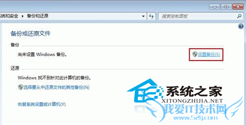 1.“开始”>控制面板>系统与安全>备份与还原,选择“设置备份”