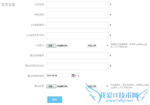 5.依照提示填写ICP备案信息,这一步需要提交的资料较多,注意图片只能上传jpg或png格式,信息填写完成后记得点击“保存”按钮。