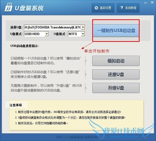 3.设置完成后,即可单击“一键制作USB启动盘”按钮开始启动U盘的制作,如图: