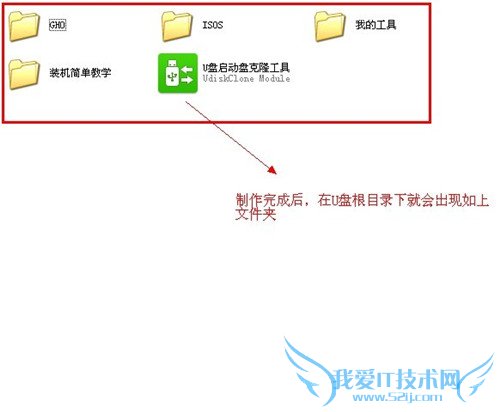 5.关闭制作工具,打开U盘,可以在U盘根目录下,看到几个重要的文件夹,如图: