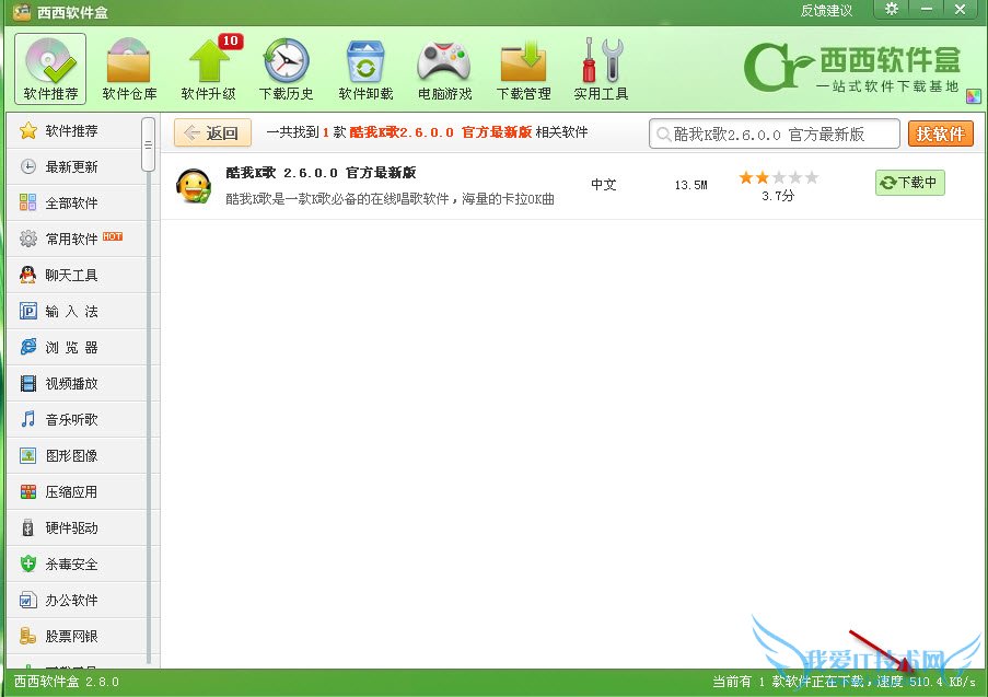 2.下载截图,亲们注意看西西软件盒“右下角”哦,这里有表明“下载速度”