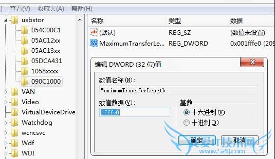 运行regedit,打开注册表编辑器,依次点击展开HKEY_LOCAL_MACHINESYSTEMCurrentControlSet Controlusbstor。在usbstor下有几个子项目,新建一个名为“090C1000”的项,并选中它,然后在窗口右边的空白处右击新建一个名为“MaximumTransferLength”的DWORD值,然后双击,把它的值改为001fffe0(如图2,十进制数值为 2097120,也就是2MB)。保存后重启系统。