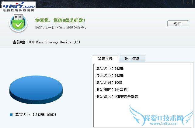 U盘实际容量及厂家详细信息。这个出厂信息也可以知道U盘是不是原品牌厂出的,有些假冒U盘会用杂牌U盘芯片冒充知名厂商的。比如你买了个金士顿的U盘,一检测U盘芯片厂商却显示不是金士顿的信息。那么就得考虑真伪了。