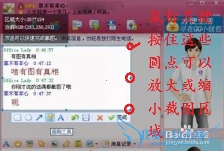 2、红色区域可以使用上下左右键来移动,还可以放大与缩小,方法是将鼠标移至边框的圆点处,鼠标变成箭头形状,然后按住鼠标左键左右移动就可以放大与缩小将要截取的区域。
