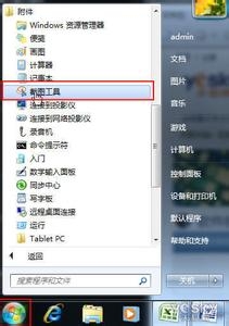 2、如果截取小范围图片,可以使用WIN7自带的截图工具,位置是:开始菜单---所有程序---附件---截图工具。