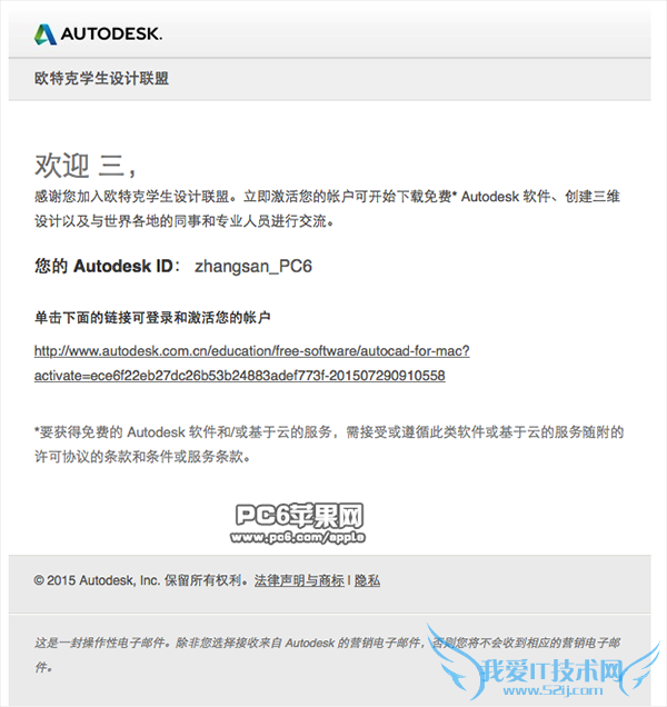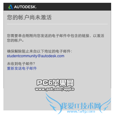 3、 填写完成后,Autodesk会发送一封激活邮件到你的个人邮箱。