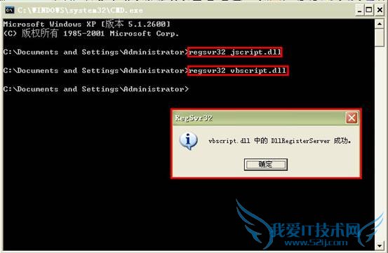 这种情况会导致双击安装程序后,看不到程序UI界面,无法继续安装,解决办法是首先按”win+r”打开CMD窗口,然后分别输入”regsvr32 jscript.dll”和”regsvr32 vbscript.dll”,在弹出的对话框上按确定按钮就可以了。如图:
