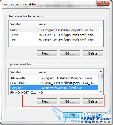上面那个框框是当前用户环境变量设置,下面的框是系统环境变量设置,这里最好是加到系统变量里面,当你切换系统用户的时候还是使用(个人推荐)!