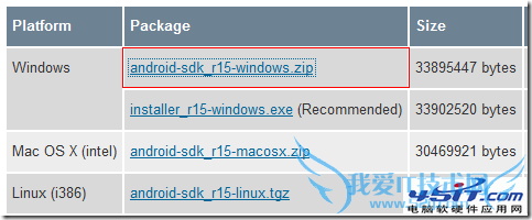 这里最好是下载zip包(windows用户),目前最新的是android-sdk_r15-windows.zip