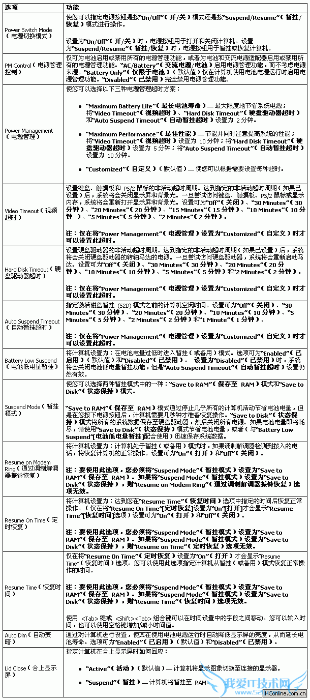 电源选项说明